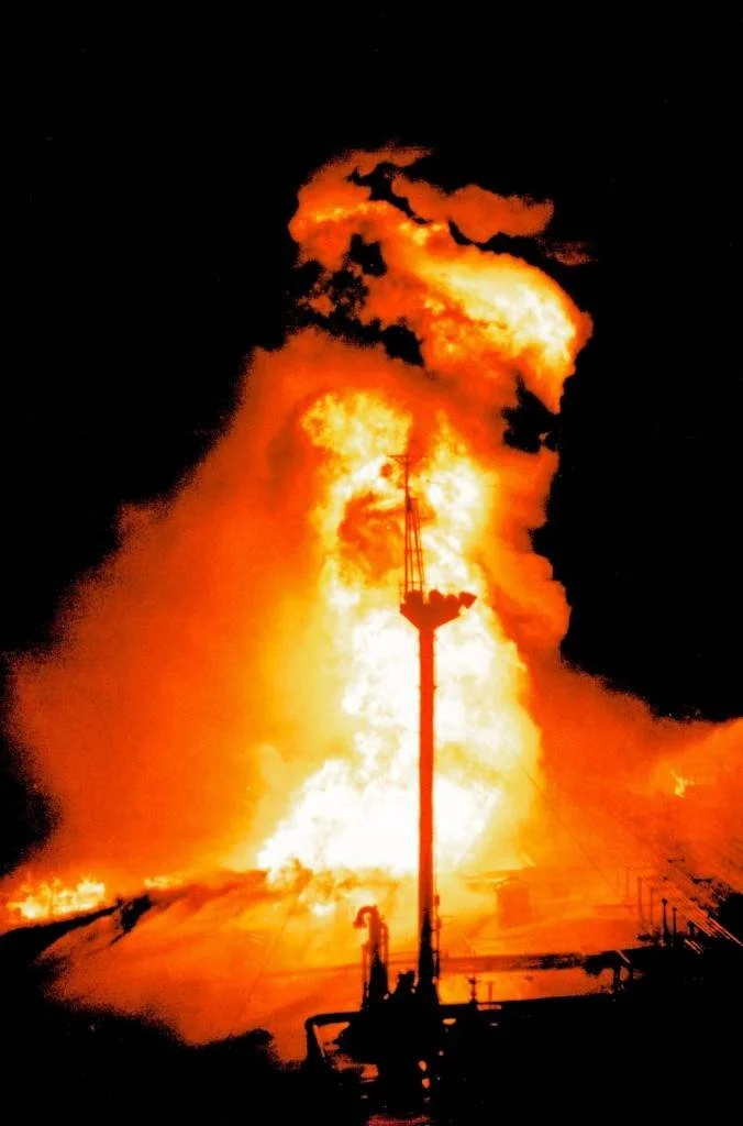 Every day, or every other day, we were given a “103” signal over the VHF, which meant “Incoming aircraft – safety helmets on” or something. In the early afternoon of 22nd December, we did not hear a “103” but the aircraft came anyway. At the time, we had the shuttle tanker “Free Enterprise” on our starboard side and the export tanker “British Respect” on our port side. “World Petrobras” was completely full at the time so the shuttle tanker was simply pumping directly through our lines to the export tanker. We did, however, have our inert gas running. At 13:32, a Mirage F1 aircraft flew down our centre line and dropped two 500 lb bombs which struck the centre of the manifold area and No. 5 port wing tank. Shrapnel went everywhere and a large fire erupted, but thankfully, due to a crew and provision boat having just arrived at the stern, nobody was standing near the points of impact and nobody on board was hurt. The fire burned until about 21:00 when finally, the attentions of 11 fire-fighting tugs managed to quell it. The fire erupted again at about 01:00, but it was just a local fire in the central store room and was easily extinguished. The story is briefly recounted in the book, “A Century of Tankers” by John Newton, © Intertanko, ISBN-10: 8299659604 pp. 116-118, and referred to in “The Tankship Tromedy” by Jack Devanney, ISBN: 0-9776479-0-0, pp. 32-33.