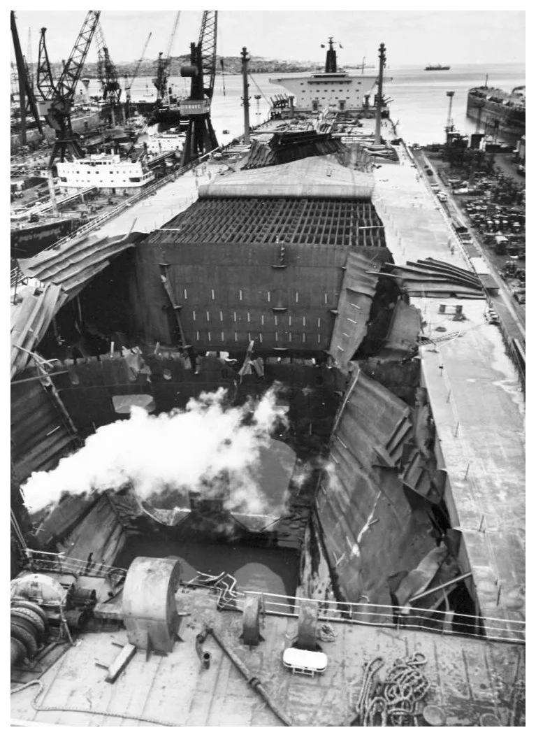 “Mobil Pegasus” at Setnave after the explosion © Malcom Foster