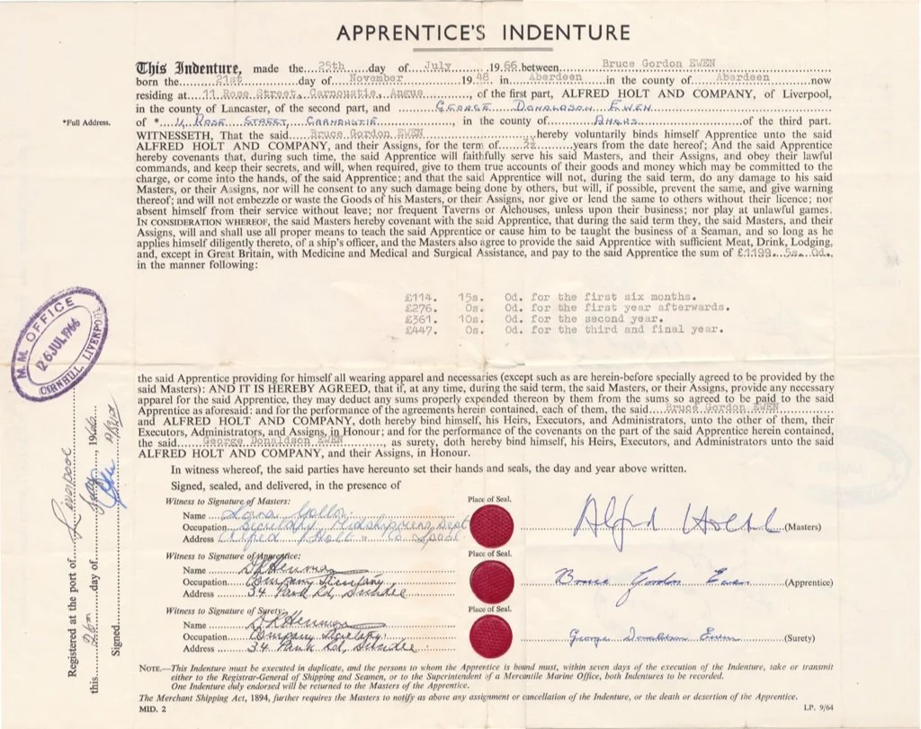 I had achieved a good pass at OND and was invited to enrol on a BSc course but at that time, I had had enough of classroom activities so decided to try something different. Blue Funnel by that time had morphed into Ocean Fleets and we had been advised that the days of general cargo ships were numbered. We were invited to apply for a position on the first generation of container ships (‘box boats’) but they did not appeal to me.
